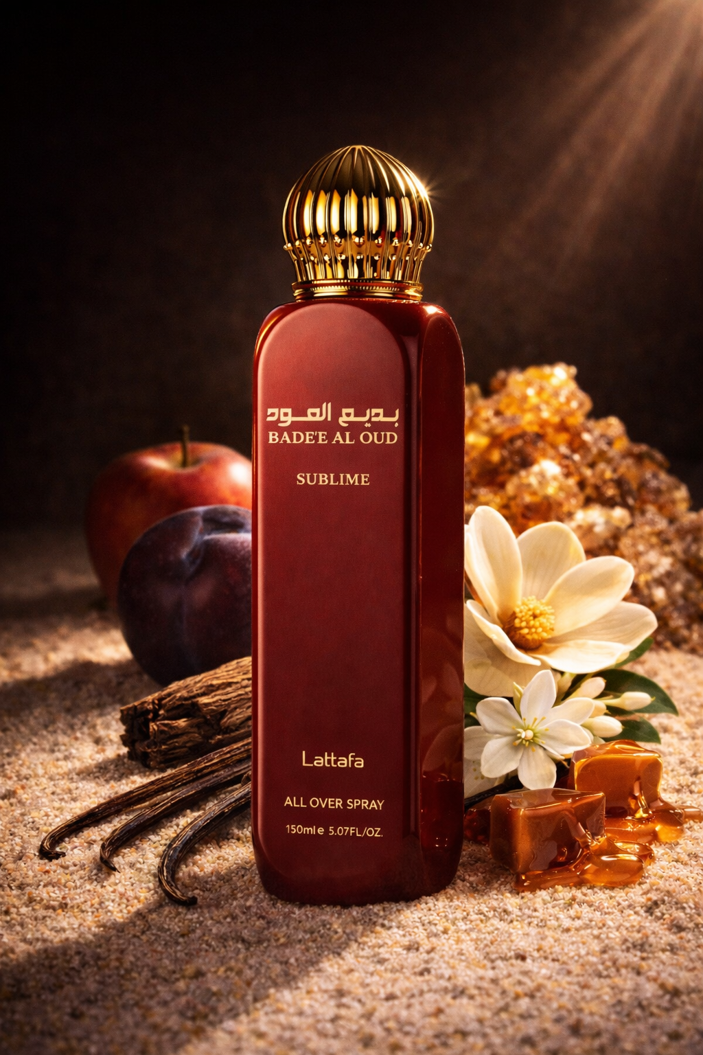 Badee Al Oud Sublime de Lattafa s’ouvre sur une envolée gourmande et juteuse de prune veloutée et de pomme croquante, capturant instantanément les sens. Son cœur dévoile une harmonie solaire et florale où le magnolia et le jasmin s’illuminent de notes ambrées et de labdanum, diffusant une chaleur raffinée et enveloppante. En fond, le musc, la mousse, le caramel fondant et l’oud précieux s’entrelacent pour offrir un sillage profond, sensuel et délicatement fumé, empreint d’une élégance absolue.