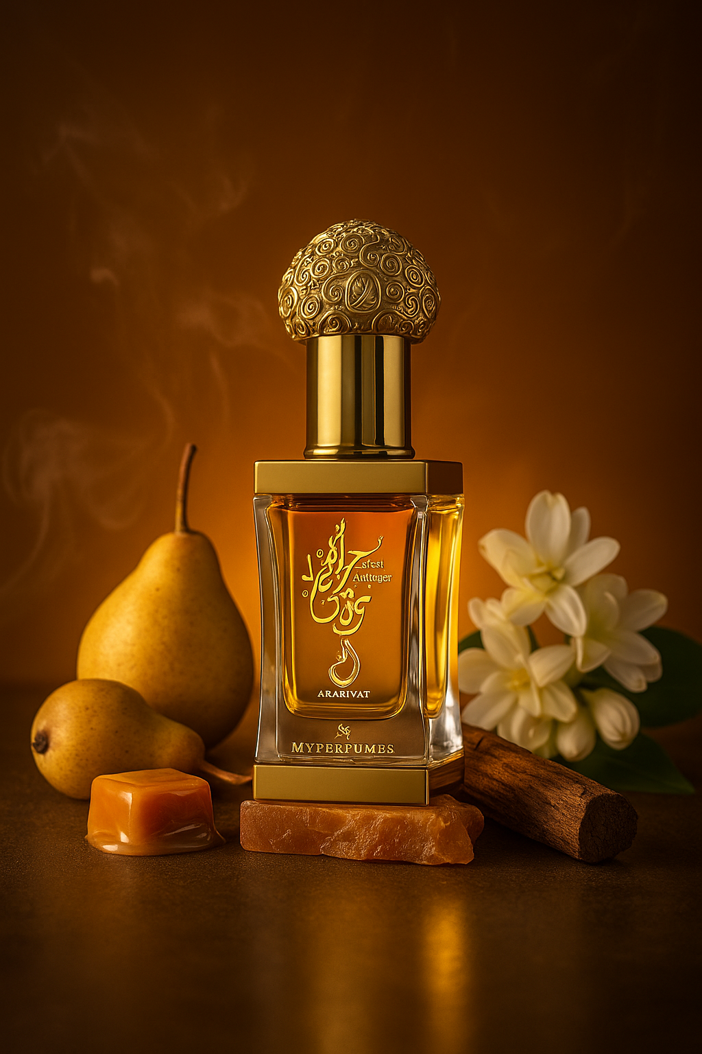 Les premières notes éclatent en un accord fruité de bergamote, de mandarine et de poire, avant de s’épanouir en un cœur floral envoûtant de tubéreuse, de fleur d’oranger et de jasmin, sublimé par une touche suave de caramel.