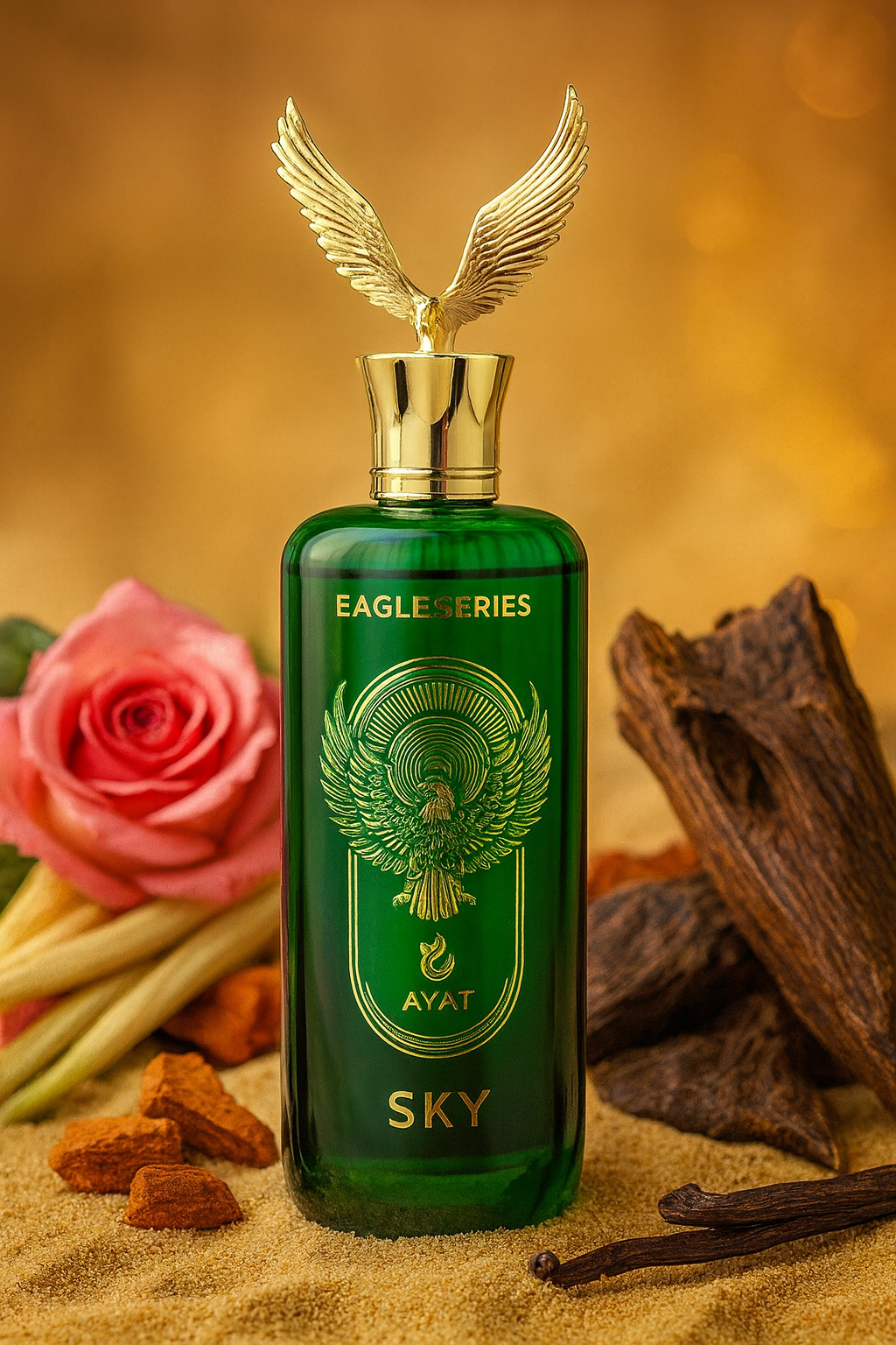 L'aigle s’élève comme une aurore parfumée, éclatant d’une fusion vibrante où le rose s’embrase au contact du basilic, de l’encens et des fruits lumineux. Une fraîcheur vive s’y déploie, piquante et caressante à la fois, éveillant les sens dans une danse d’étincelles et de douceur.