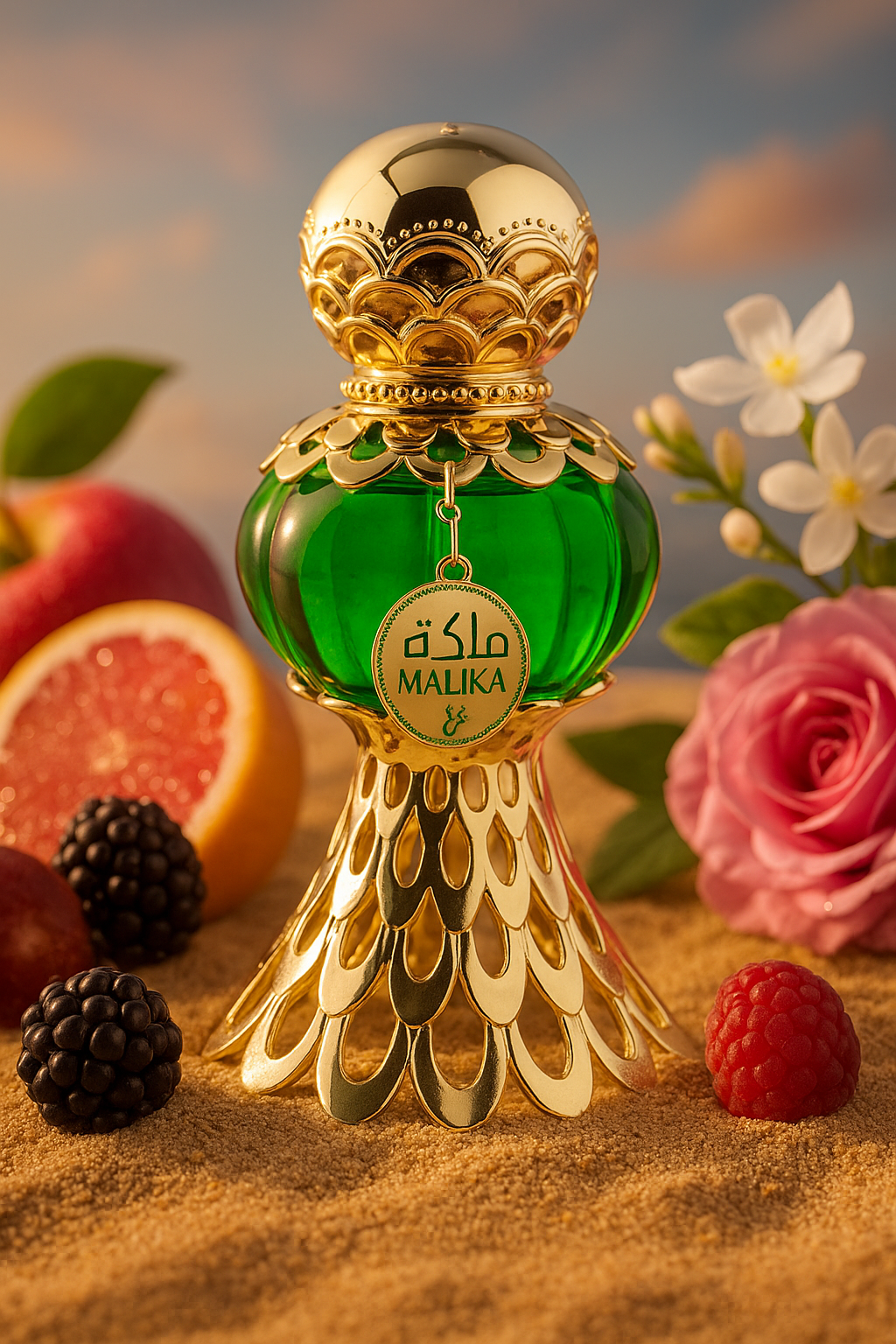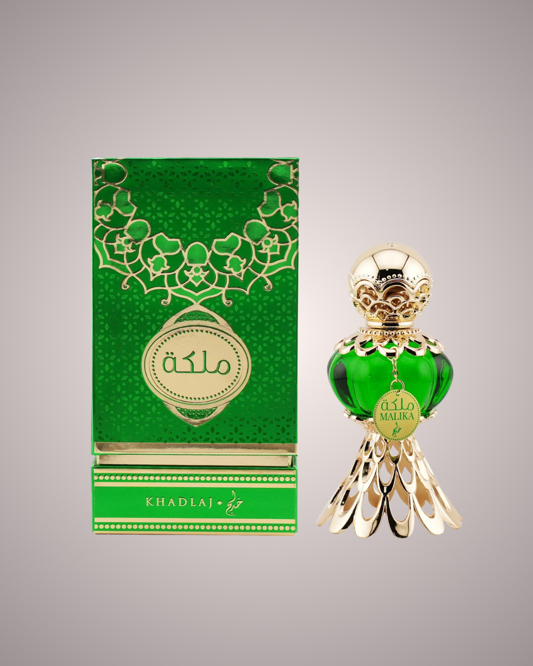 L’huile parfumée Malika Green de Khadlaj dévoile un mariage somptueux d’épices exotiques et de luxe raffiné,