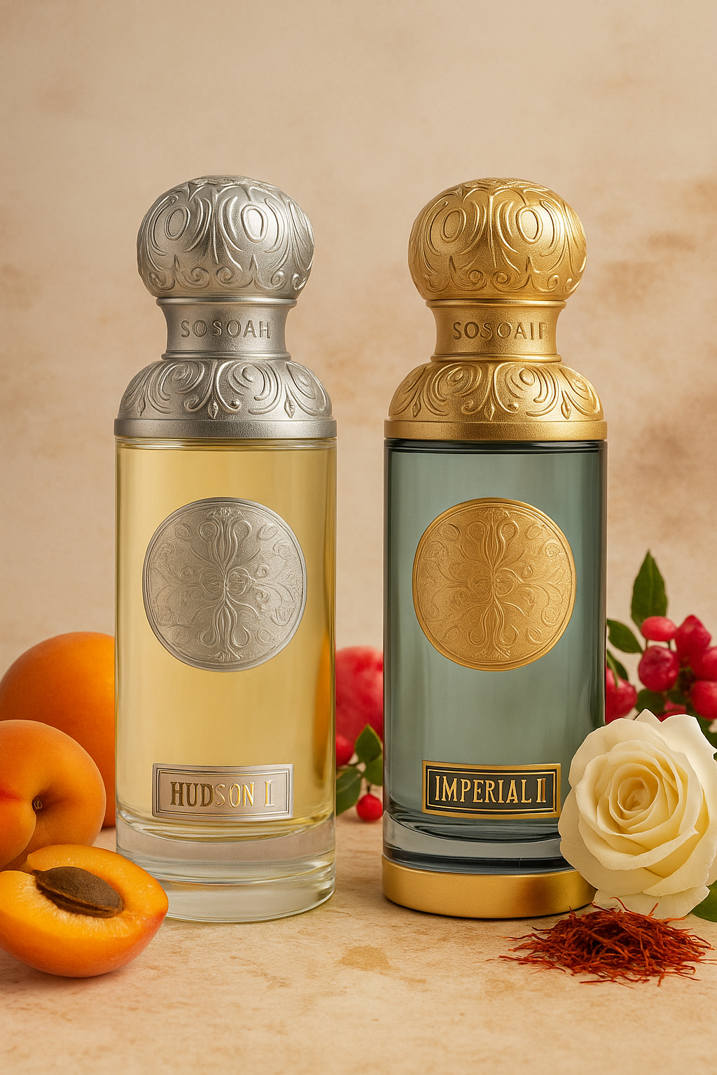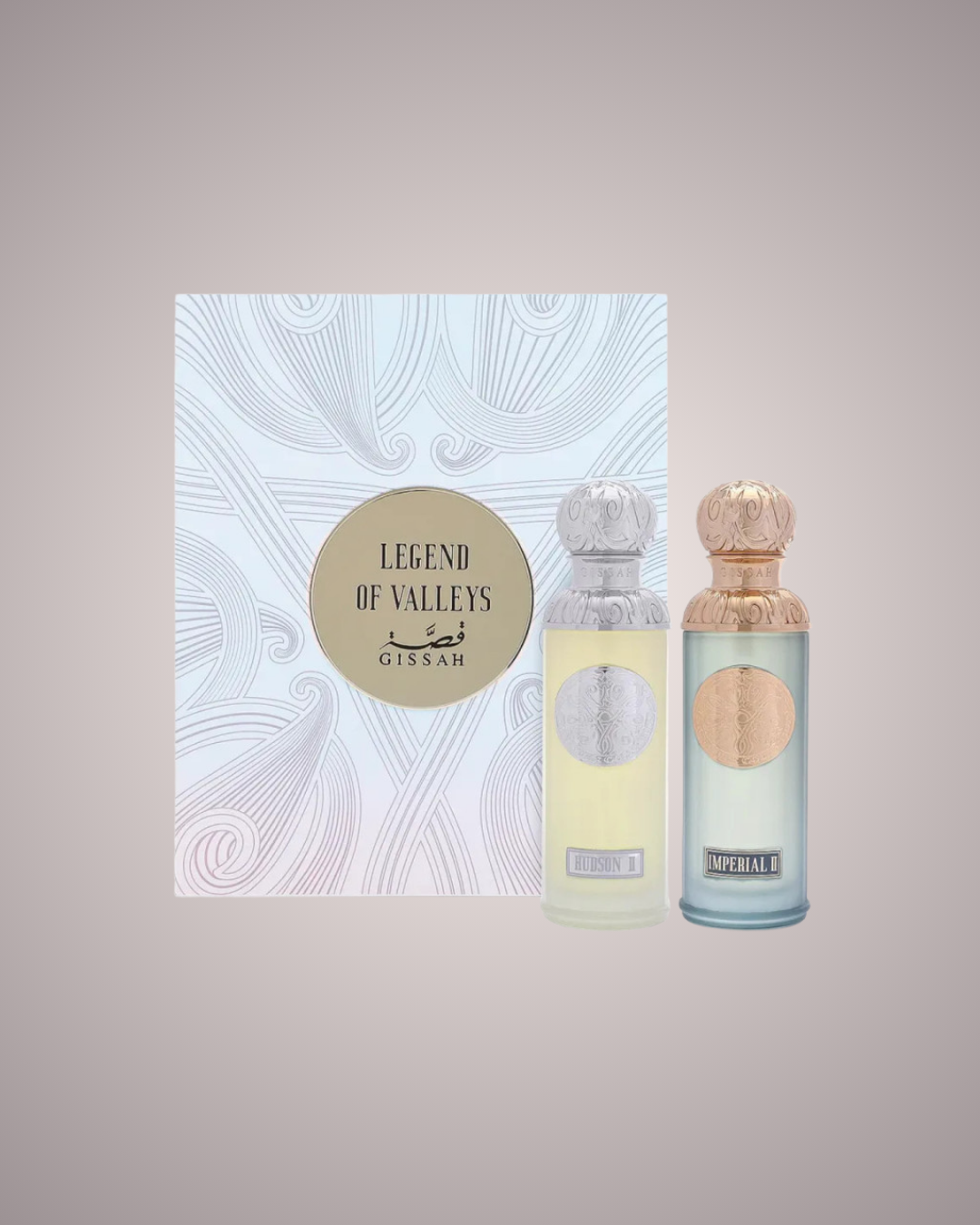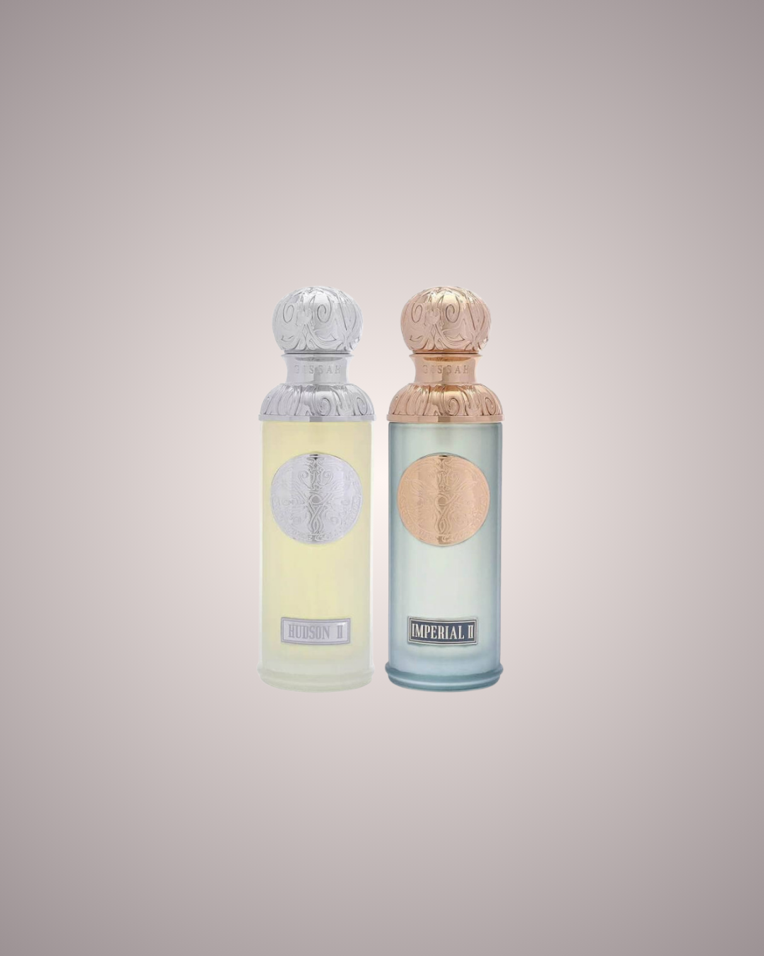 Dans cette boîte précieuse repose un duo en parfaite harmonie : Hudson II et Imperial II, deux parfums jumeaux nés d’une même essence, mais porteurs de deux tempéraments — l’un solaire et libre, l’autre noble et profond.